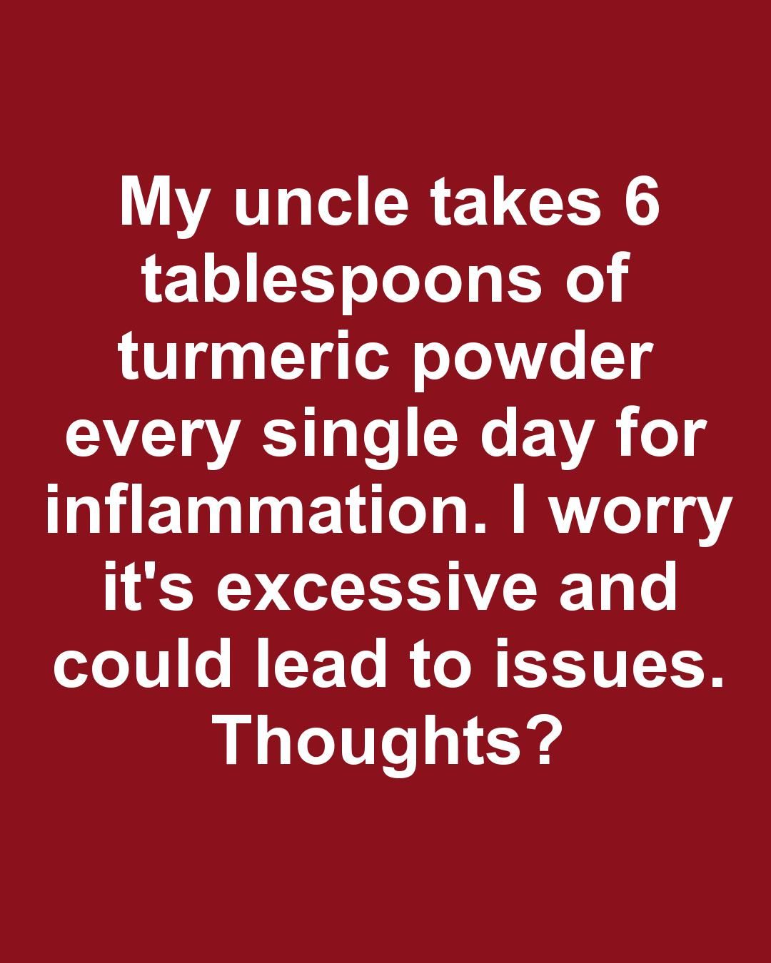 My uncle takes 6 tablespoons of turmeric powder every single day for inflammation. I worry it’s excessive and could lead to issues. Thoughts?